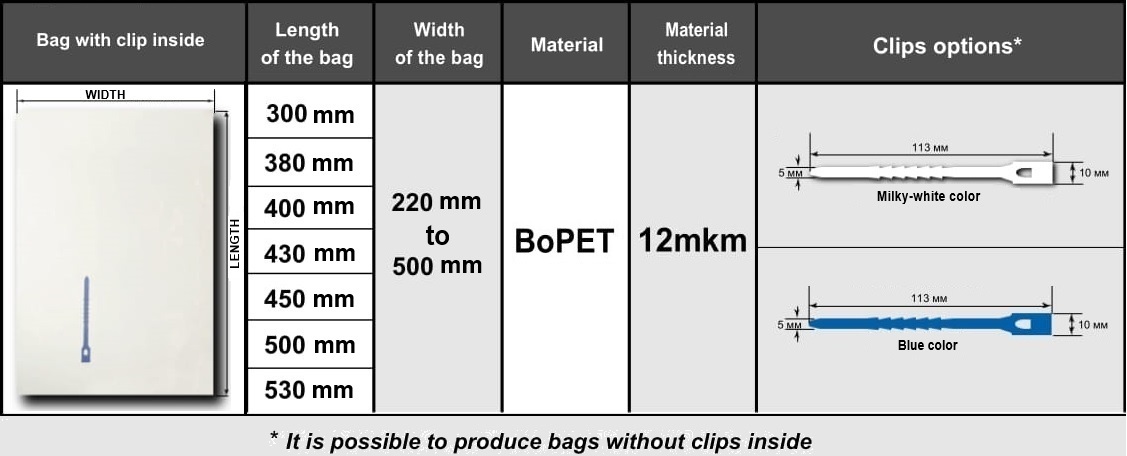 Upon the needs of the customers, EKOPLAST LLC can produce cooking bags of different sizes, that allow you to cook dishes with garnish