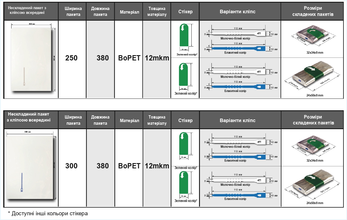 СКЛАДЕНІ ПАКЕТИ ДЛЯ ЗАПІКАННЯ